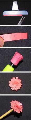 - Vyjměte květinku z hrotu, můžete ji nechat jemně rozvinout a prstem nebo druhým koncem kolíku rozevřete třásně.