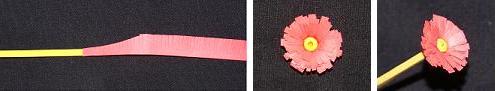 - VLožte žlutý proužek papíru do do hrotu a stáčejte klasickým způsobem. Kytičku vytvoříte podle výše uvedeného návodu.
